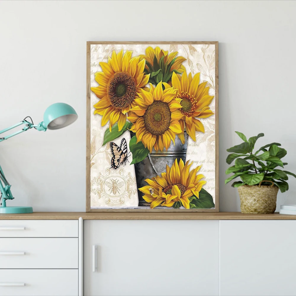 Pintura de diamantes artesanales 5D, jarrn, punto de Крус, flor de ...