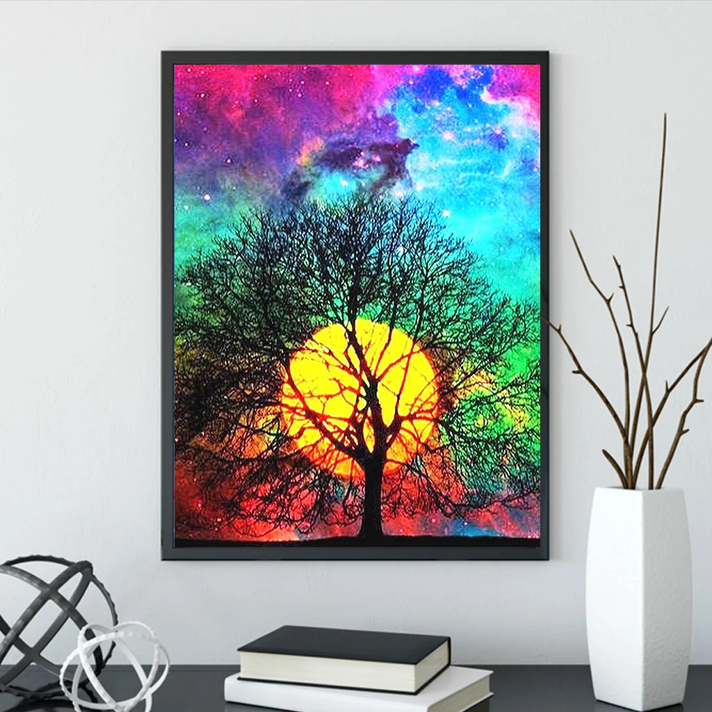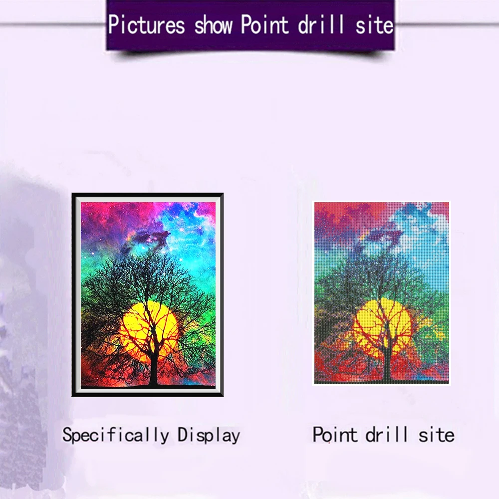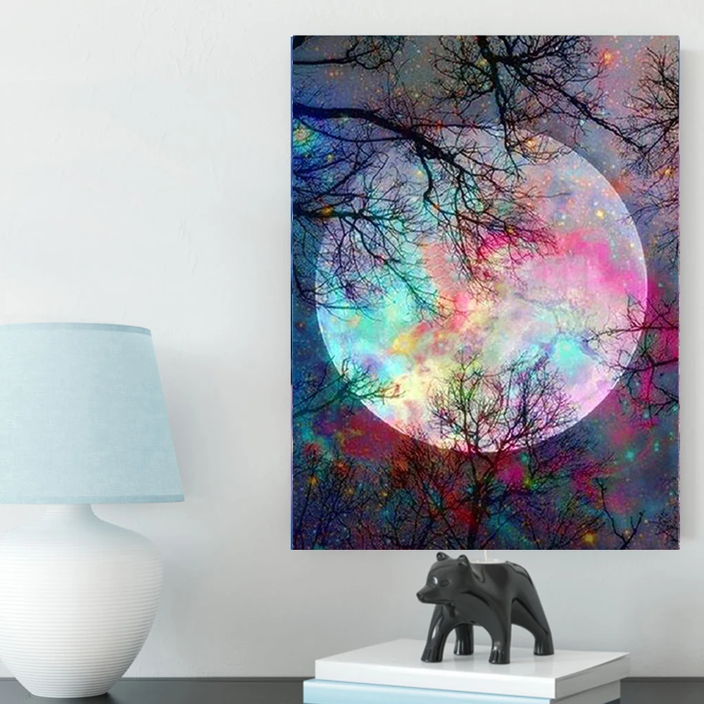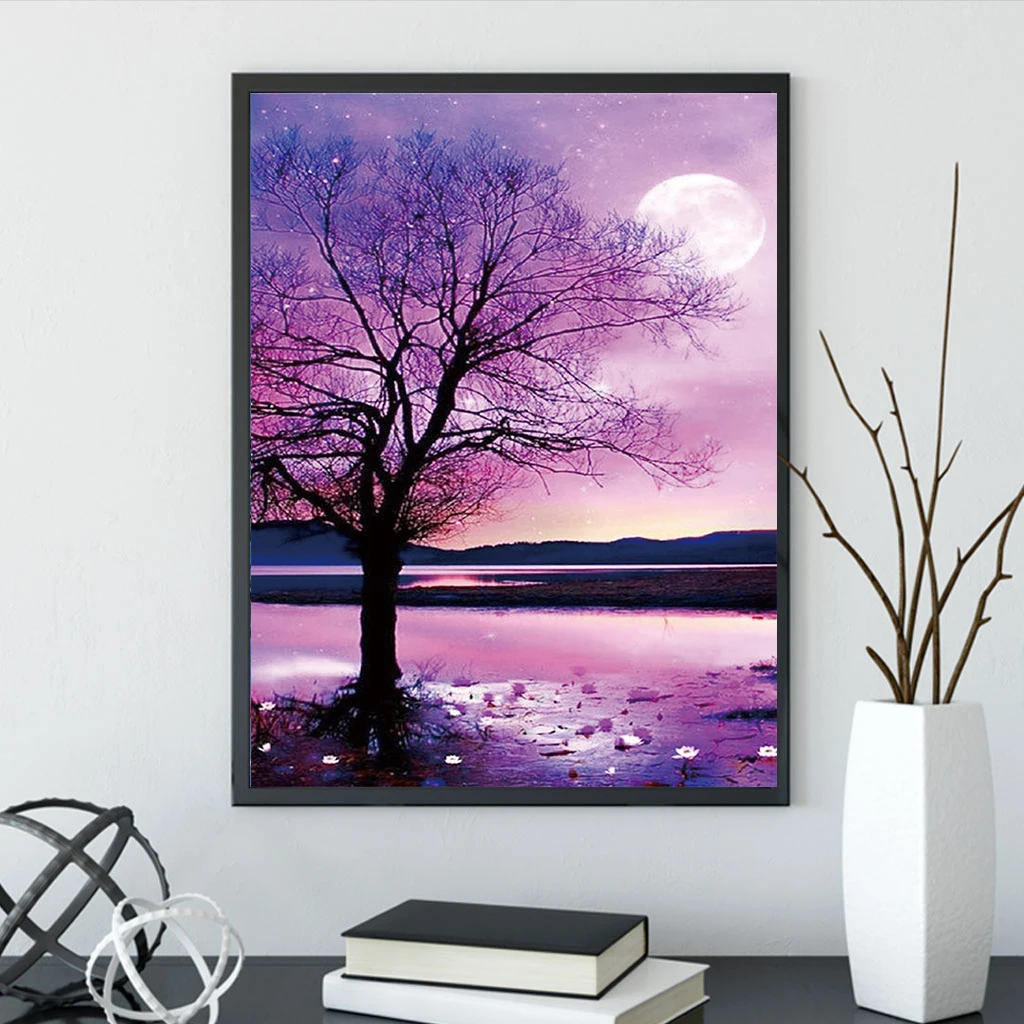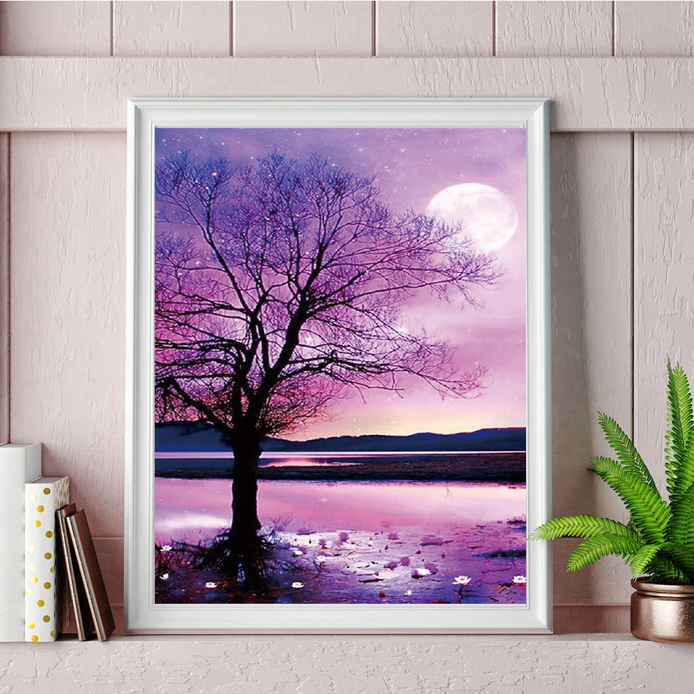 Полноформатная алмазная живопись, луна, дерево, 5D искусство, едино...