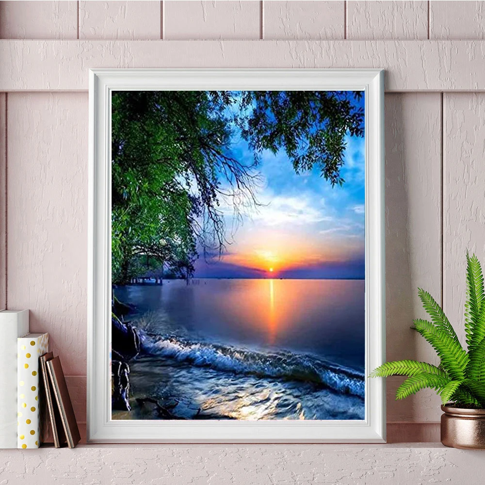 Картина Закат Ландшафтная мозаика с бриллиантами, вышивка крестиком...