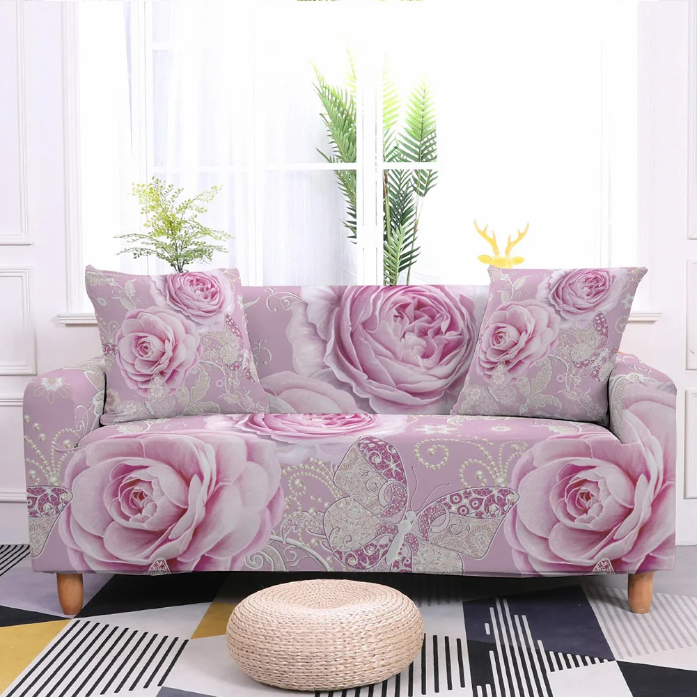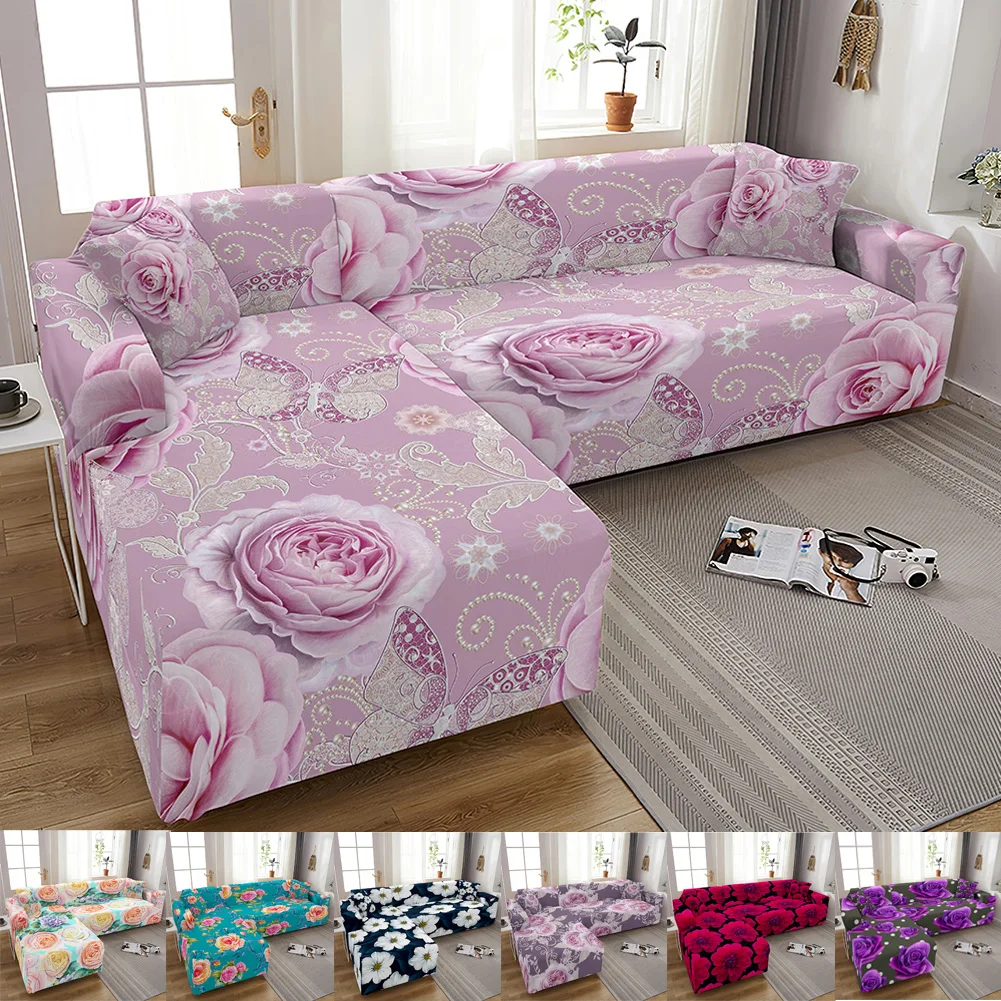Чехлы для диванов, натяжные, с розами, для гостиной, чехол для секционного дивана, для 3-х местных диванов, 2 шт.