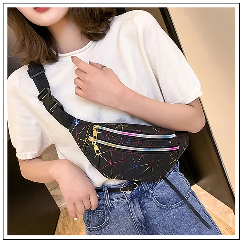 Поясная Сумка для женщин с голографическим рисунком, забавный кошелек на пояс, нагрудная Сумочка для телефона с лазерным узором, бананка для почек