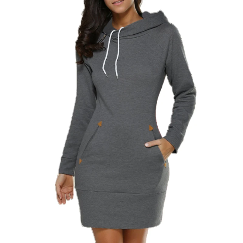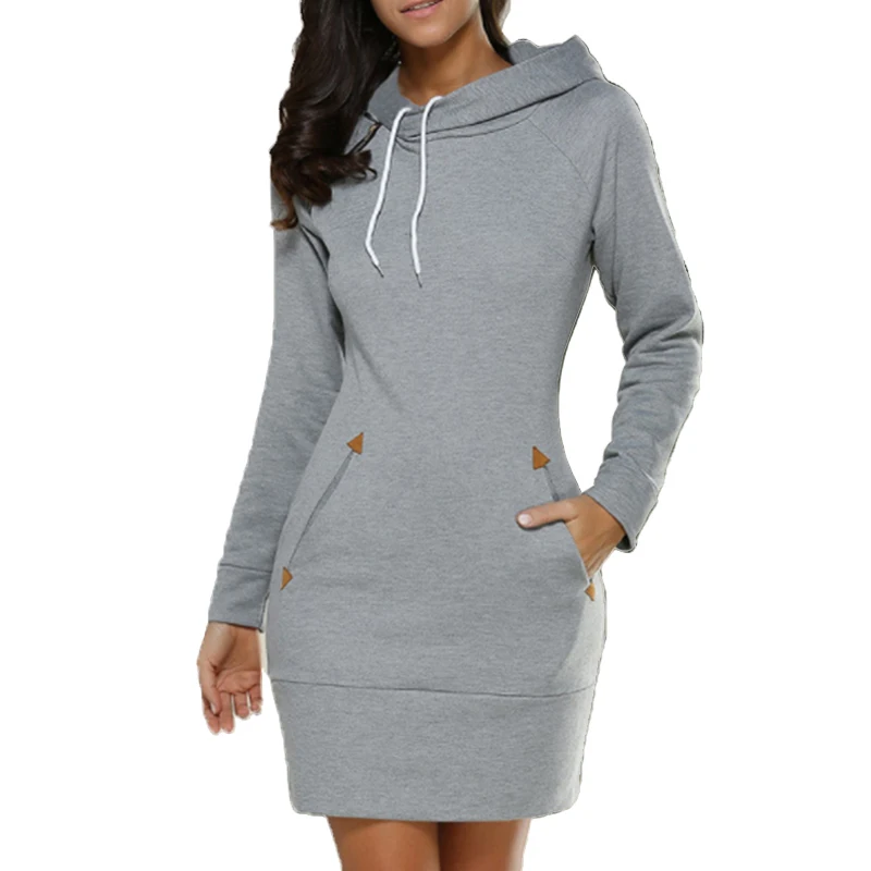 Женское осеннее платье-толстовка с капюшоном, повседневные платья-с...