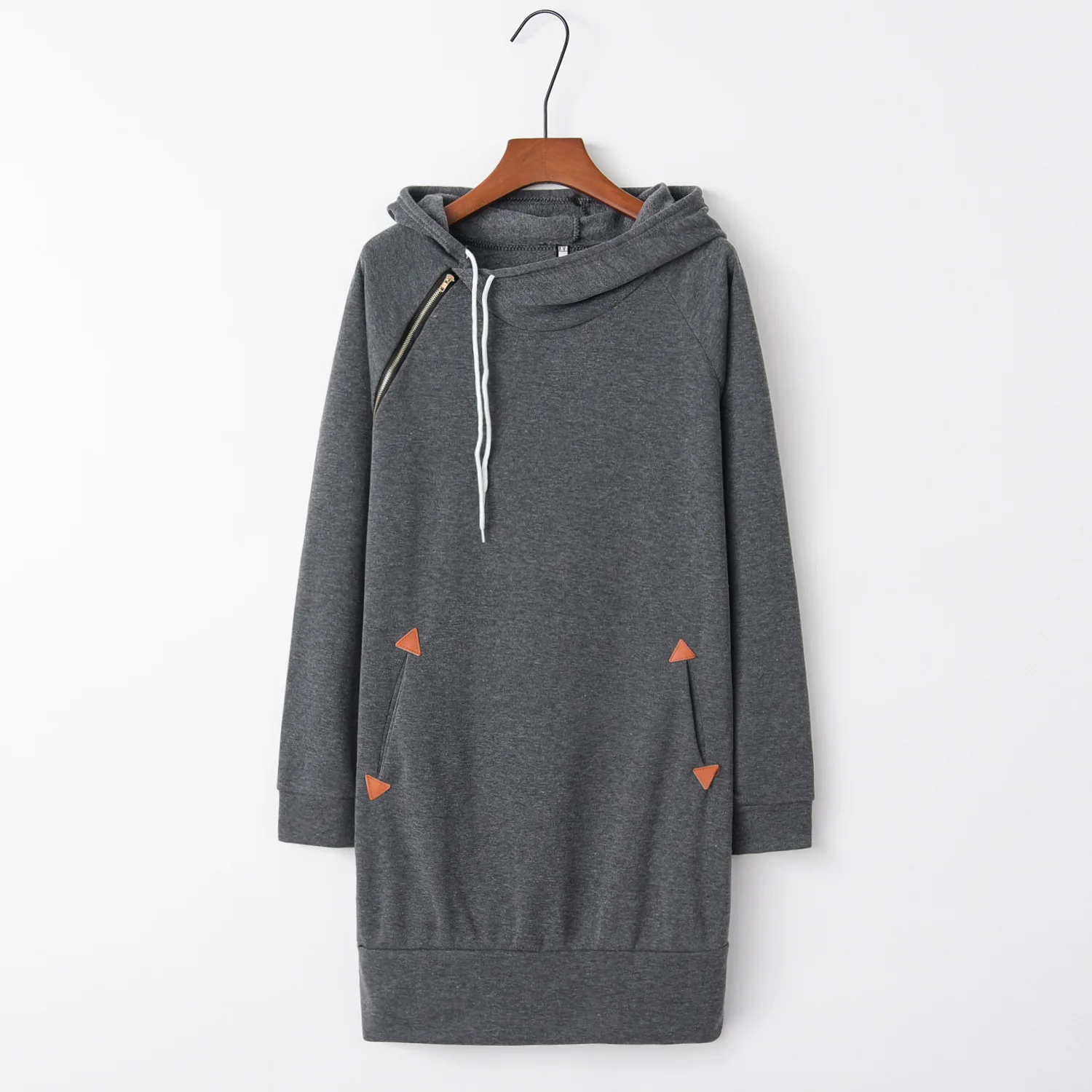 Весенне-осеннее сверхдлинное платье с капюшоном, однотонный свитшот...