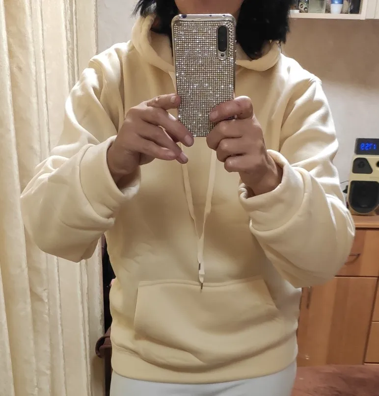 Когда покупаю что-то на Али, всегда читаю отзывы и очень благодарна тем людям, которые их пишут правдиво и подробно, поэтому . Толстовка превосходная, цвет богатый, я: грудь 98, рост 182. Немного оверсайз, как и хотела. И ничего, что синтетика, зато плотная, толстая и очень теплая. Длина рукава, ещё есть запас, если её полностью выпрямить, будет по бедра. Доставка не долгая.Спасибо магазину, буду ещё у них заказывать.