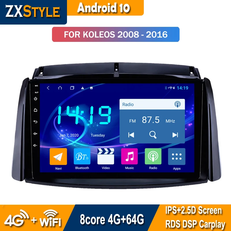 Автомобильное радио, мультимедийный видеоплеер, Android 10,0 DSP CarPlay, GPS, для Renault Koleos 2008-2016, 2din, DVD