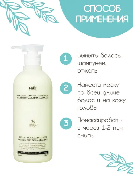 Увлажняющий кондиционер для волос с растительными экстрактами La'dor Moisture Balancing Conditioner смягчает, питает, увлажняет, оздоравливает и успокаивает волосы, разглаживает их по всей длине и облегчает расчёсывание.