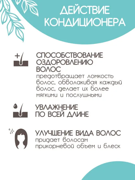 Кондиционер восстанавливает мягкость, упругость и гладкость волос. Он хорошо разделяет волоски, устраняет спутанность, облегчает укладку и расчёсывание. Снимает статическое электричество, делает локоны послушными и ухоженными. Кондиционер помогает восстановить здоровье и жизненную силу волос. Он склеивает поврежденные чешуйки, ускоряет рост локонов, защищает их от ломкости и выпадения, устраняет перхоть, снимает зуд и тяжесть, предотвращает развитие раздражений и воспалений.