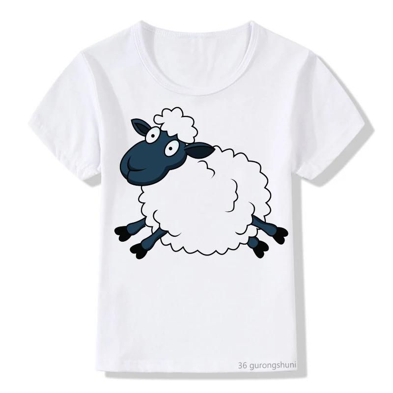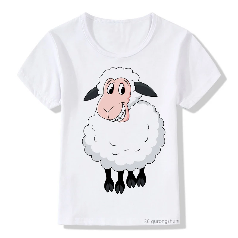 Футболки, забавные детские футболки с милым мультяшным принтом овечки, летняя популярная футболка в стиле Харадзюку для мальчиков и девочек, подходящие ко всему летние белые футболки, топы