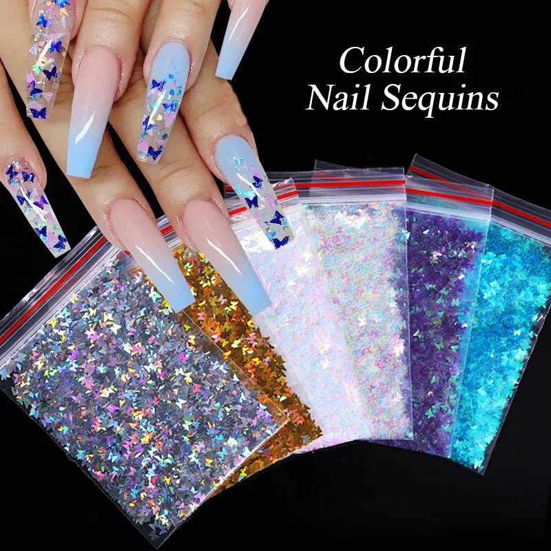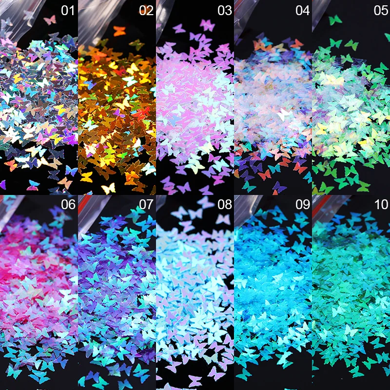 3D лазерная голографическая блестящая краска для ногтей самодельные Украшения для ногтей Бабочка микс цвета блестящая Фольга для дизайна ногтей хлопья