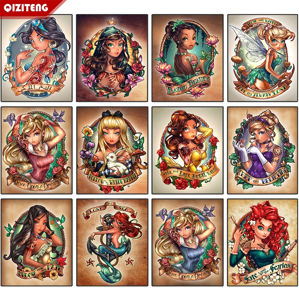 Алмазная живопись сделай сам с изображением Принцессы Диснея, цветн...