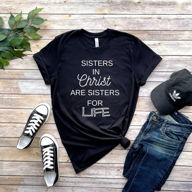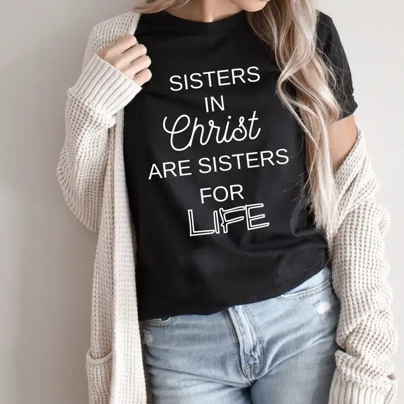 Футболка женская с круглым вырезом, смешная одежда с принтом сестры Христа и сестры для жизни, хлопковая с коротким рукавом