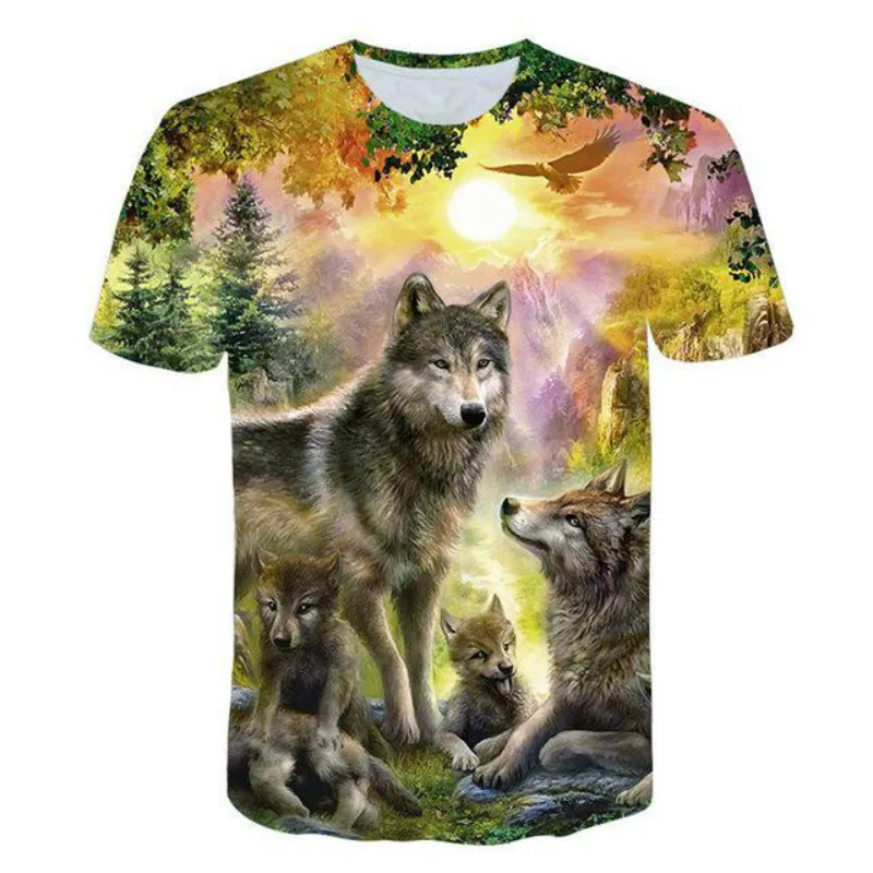 Футболка Мужскаяженская с 3D-принтом волка, Модный повседневный топ...