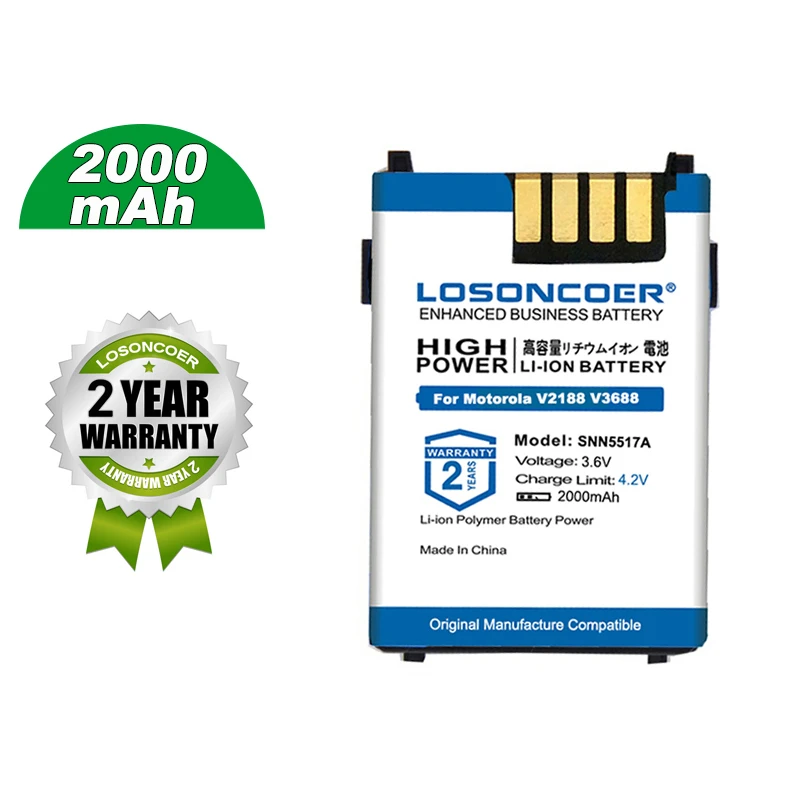Аккумулятор LOSONCOER 2000 мАч V998 SNN5517A для Motorola V2188 V3688 L2000 2088 3690 3620 P7789 8160 T189 V50 V998 L708WINGS V998 +