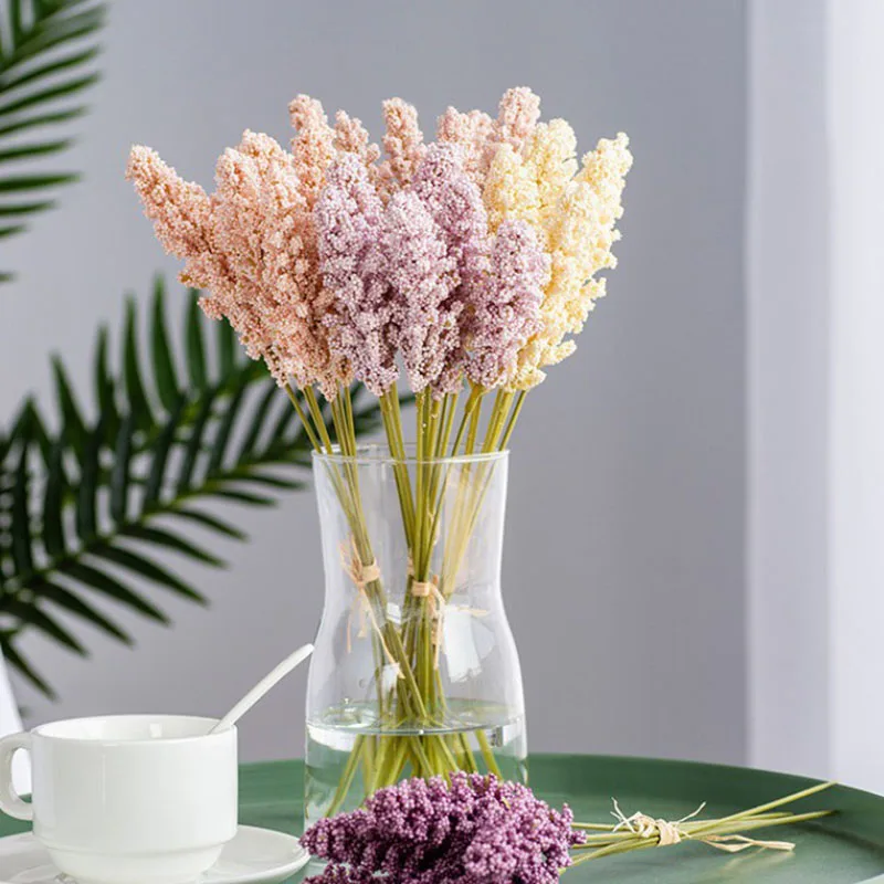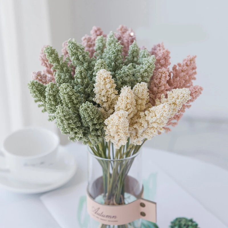 Искусственные цветы, пшеница, лаванда, 6 палочек, искусственная кукуруза, украшение для дома, свадебная фотография, высококачественные пластиковые искусственные цветы Q60
