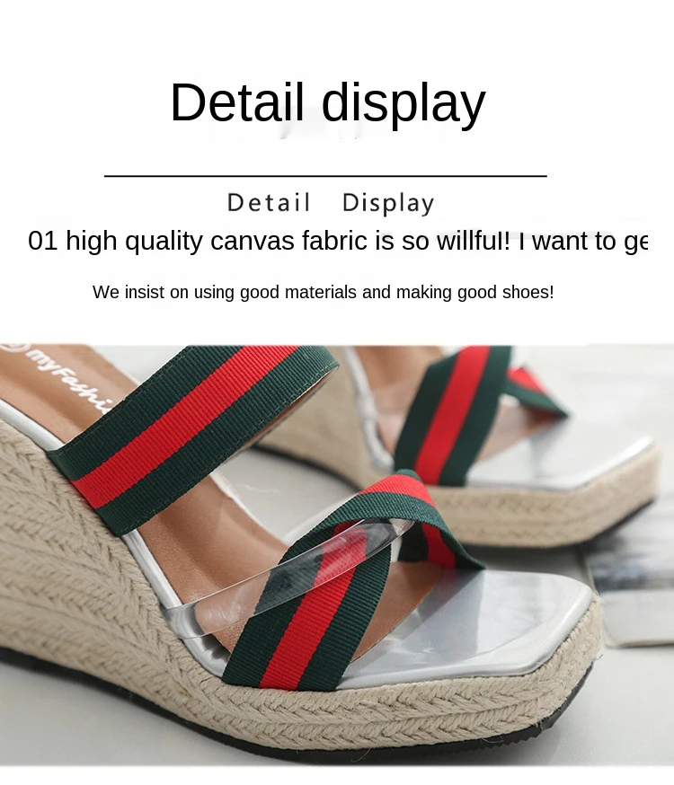 Женские босоножки на танкетке, двухцветные плетеные сандалии на высоком каблуке с прострочкой, с открытым носком и пеньковой веревкой, лето 2021