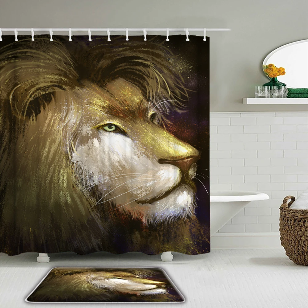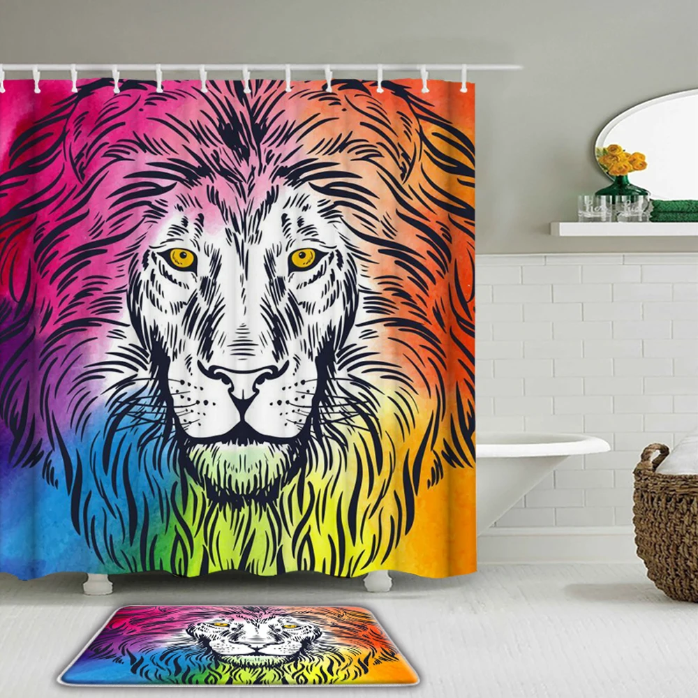 Штора для душа с изображением Льва, тигра, кошки, собаки, животных, набор штор для ванной комнаты, занавеска для ванной, туалет, нескользящий коврик, коврик для ванной, Декор
