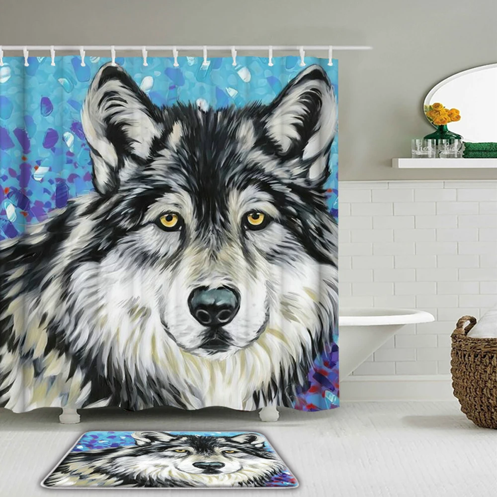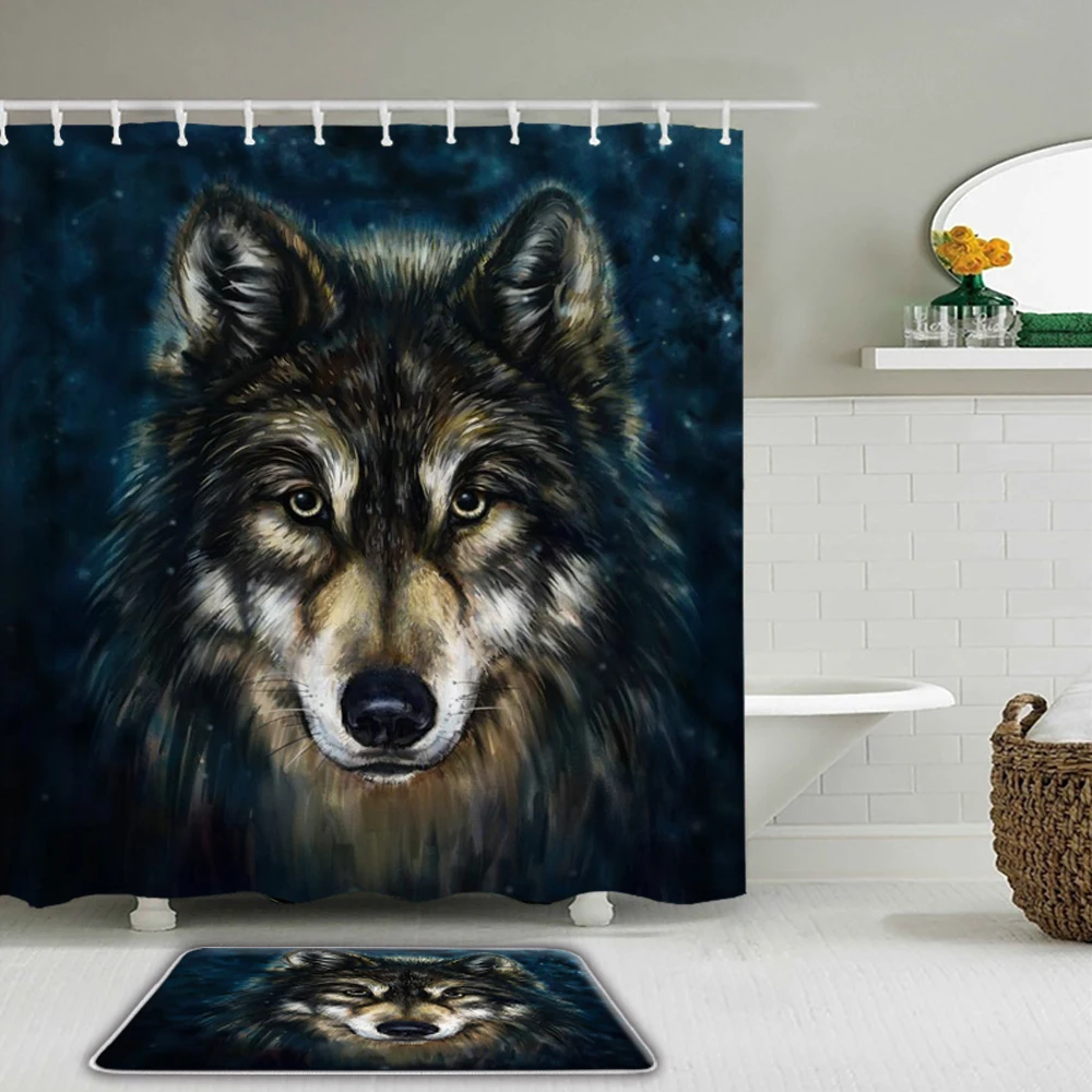 Тканевая занавеска для душа с 3D рисунком волка оленя тигра медведя...