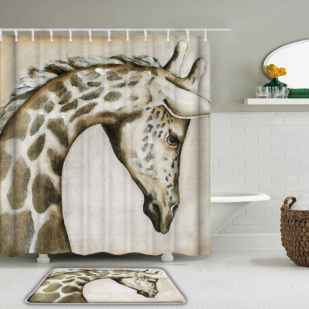 Занавеска для душа с изображением жирафа и крючком, декоративная Че...