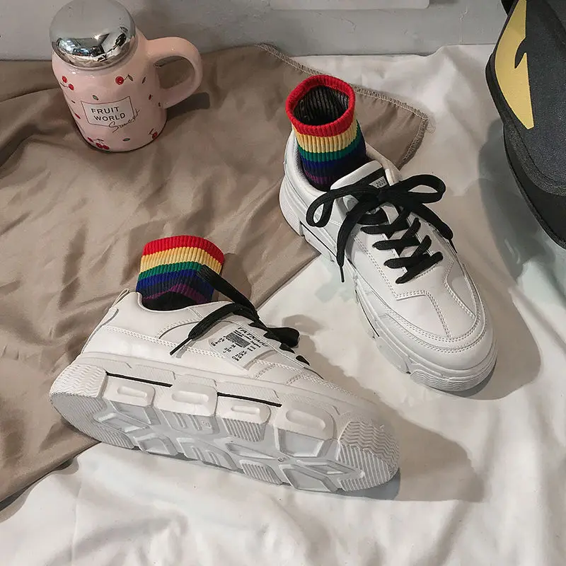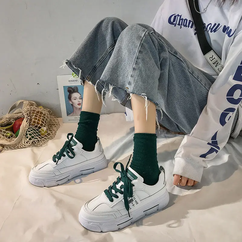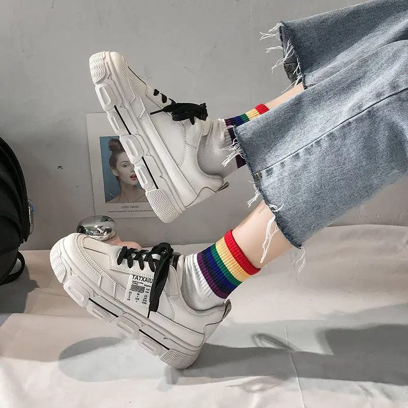 Женские кроссовки QWEEK 2021, Белые Повседневные Спортивные кроссовки на платформе в Корейском стиле, кроссовки для бега на плоской вулканизированной подошве, весна-осень