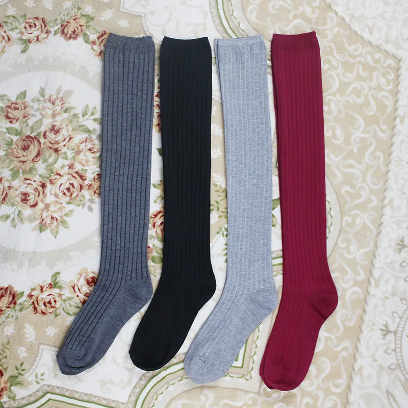Женские Хлопковые гольфы до бедра, вязаные однотонные гольфы в рубч...