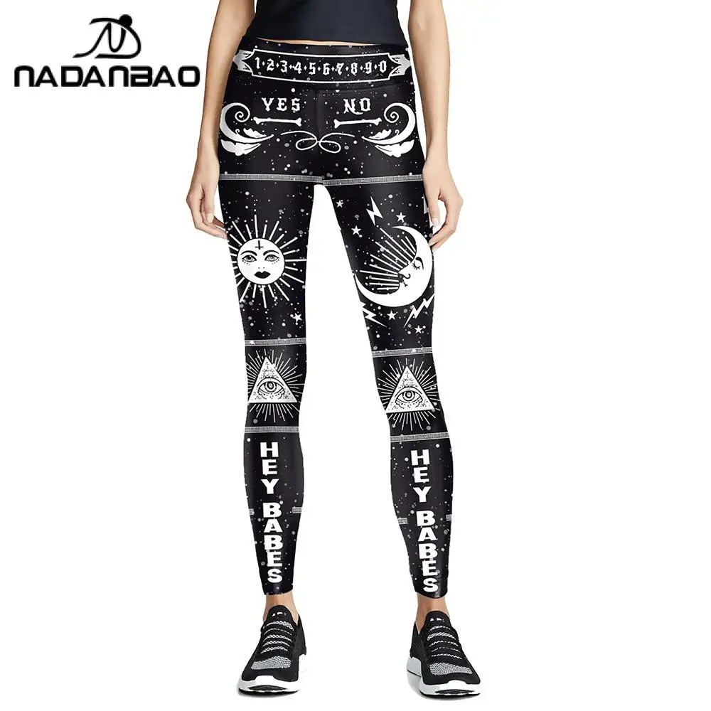 Женские леггинсы в готическом стиле NADANBAO, повседневные брюки до щиколотки со средней талией и принтом солнце и луна, для тренировок, новинка 2022