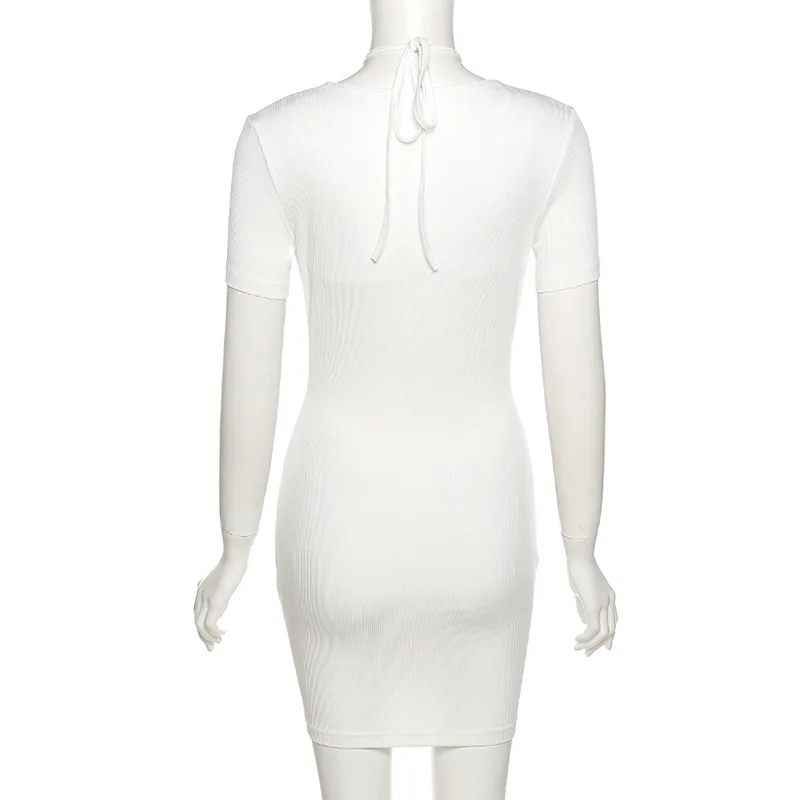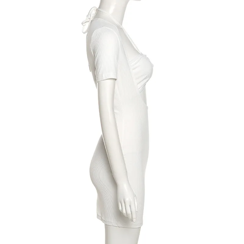 Женское облегающее мини-платье с коротким рукавом и лямкой на шее