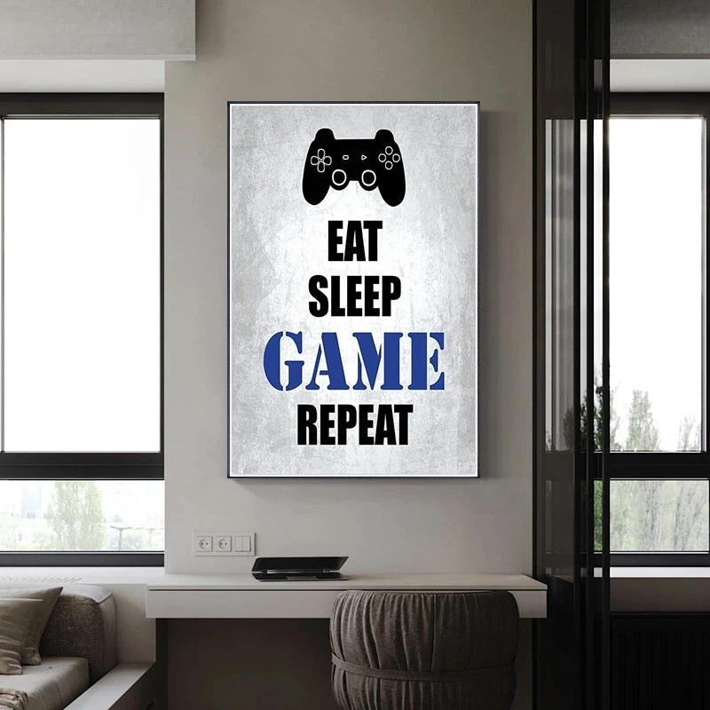 Плакаты на холсте с изображением тематических видеоигр, картины черного, белого и синего цветов для спальни, игр, декор для подростков