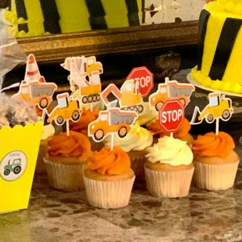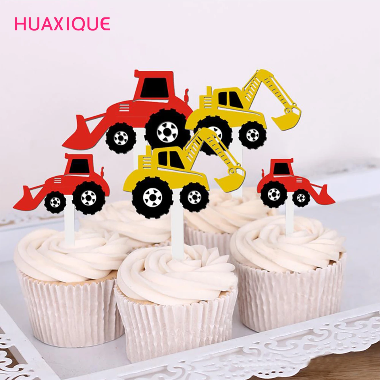 Топперы и обертки для кексов, для строительвечерние, трактор, экскаватор, топпер для торта, самосвал, тематическая вечеринка на день рождения Декор тортов