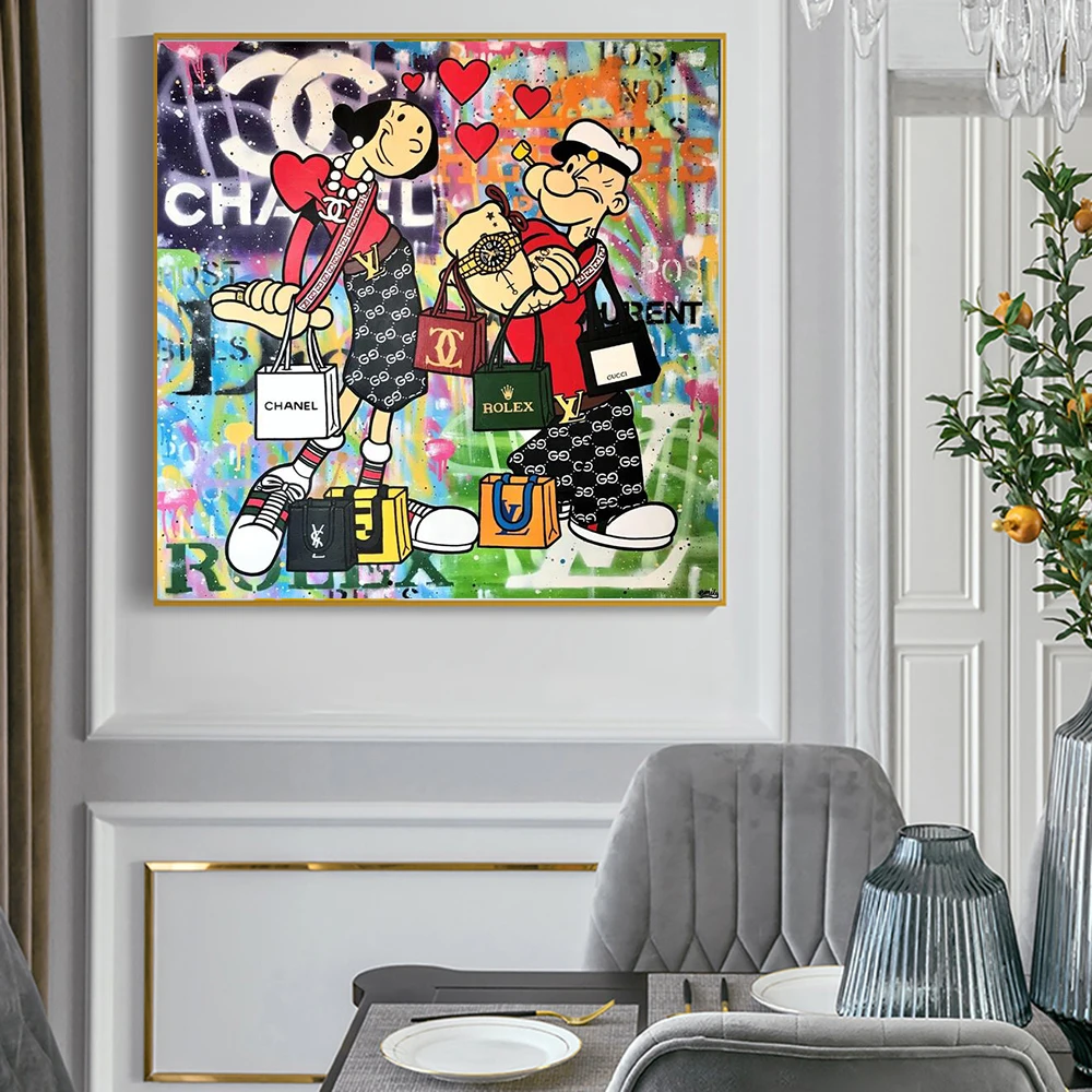 Disney Минни и Микки с роскошной сумкой граффити Искусство Живопись на стене искусство Розовая пантера уличное искусство домашний декор