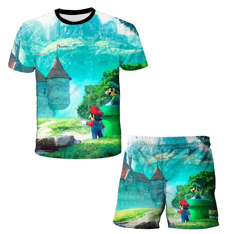 Костюм с Марио, футболка и штаны с 3D-принтом, с круглым вырезом