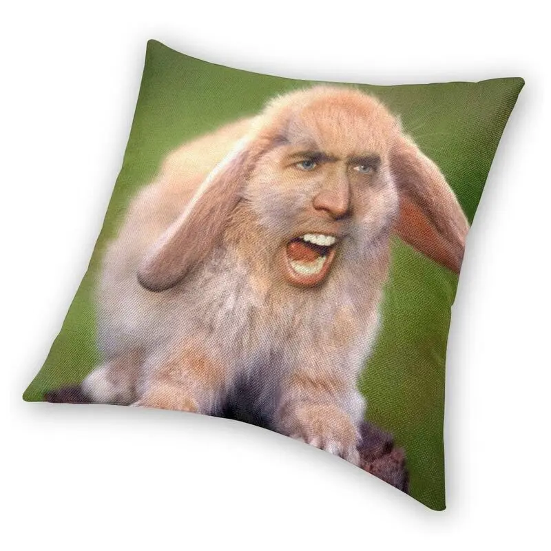 Декоративная подушка для чехла с кроликом Николаса Кейджа, забавные подушки для мема, подушка для дивана с двусторонним принтом
