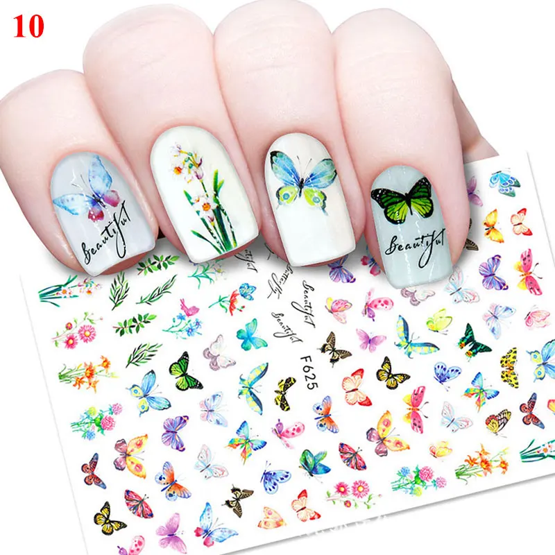 3D лазерные наклейки для ногтей с бабочкой градиентные Слайдеры для ногтей бабочки розы Слайдеры для ногтей Наклейка для маникюра сделай сам украшение для ногтей