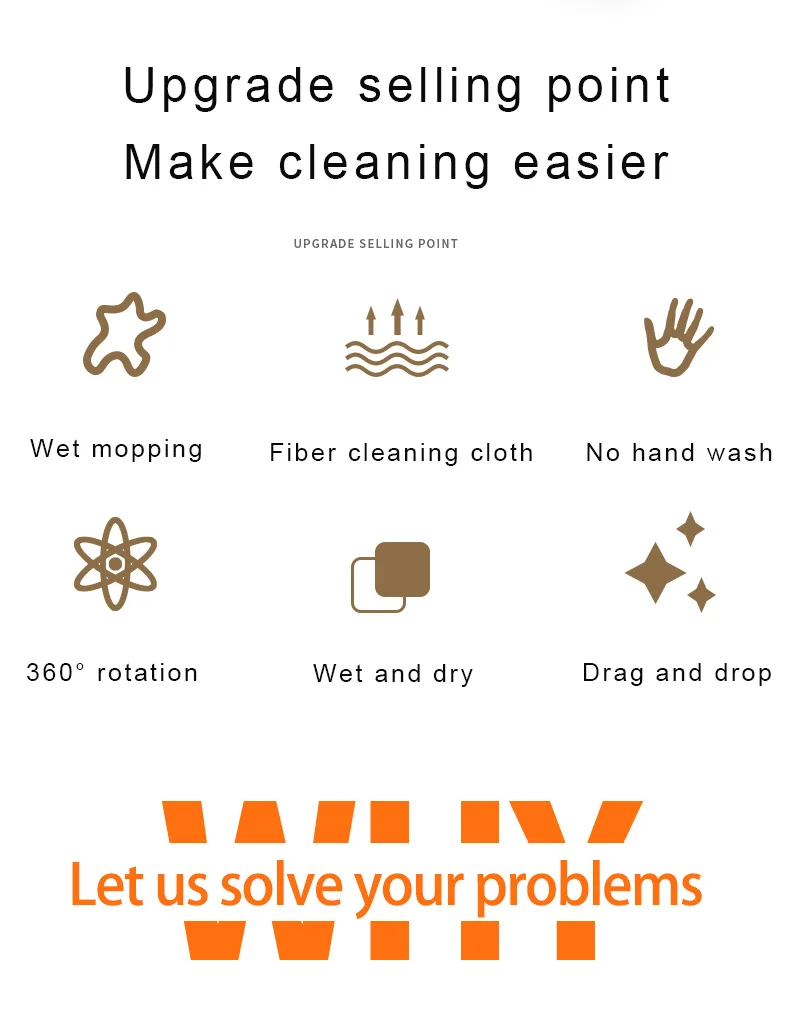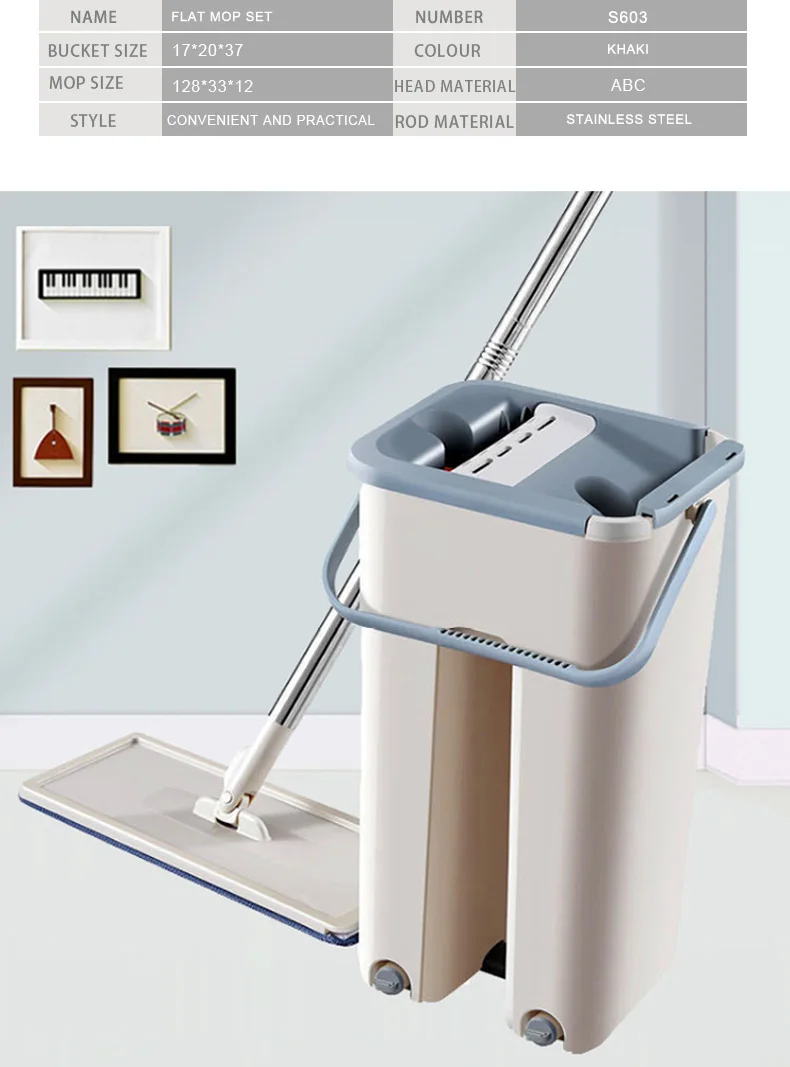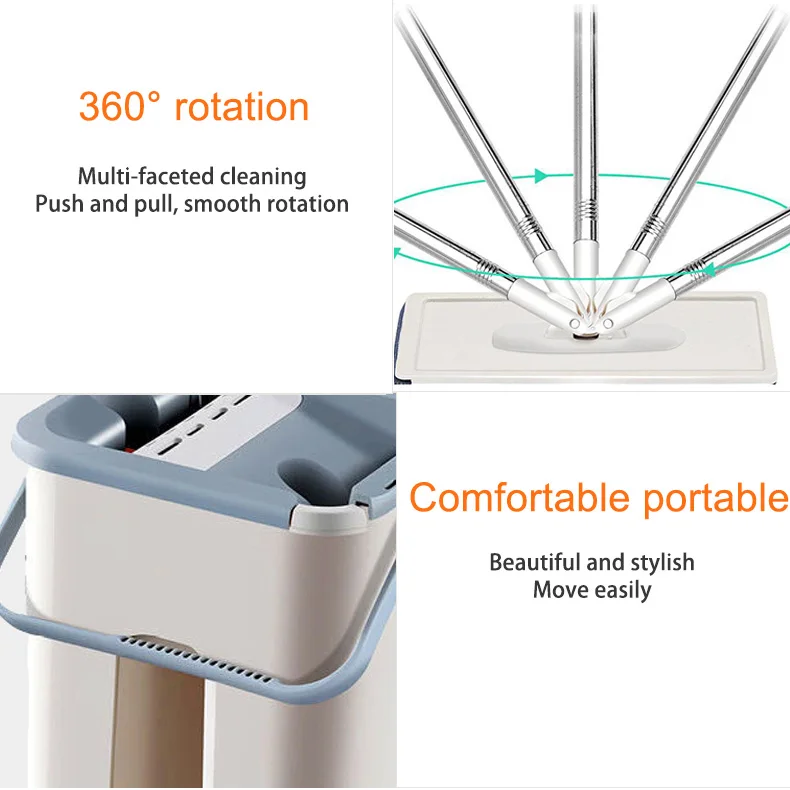 Швабра для уборки пола с ведром, автоматическая Вращающаяся головка, рукоятка с отжимом, аксессуары для уборки дома и кухни 2