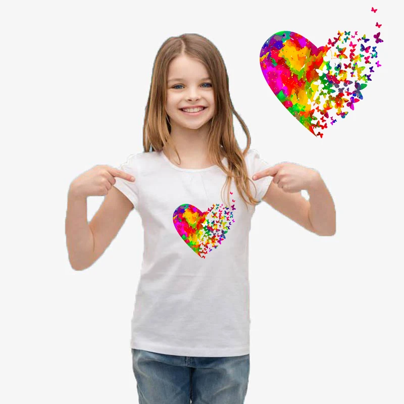 Красочные сердце бабочка Железный термотрансферный стикер цветок автомобиль мультфильм печать на одежде патчи моющиеся тепло пресс аппликация