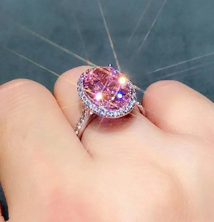Женское кольцо с розовым опалом и зеленой эмалью, с кристаллами