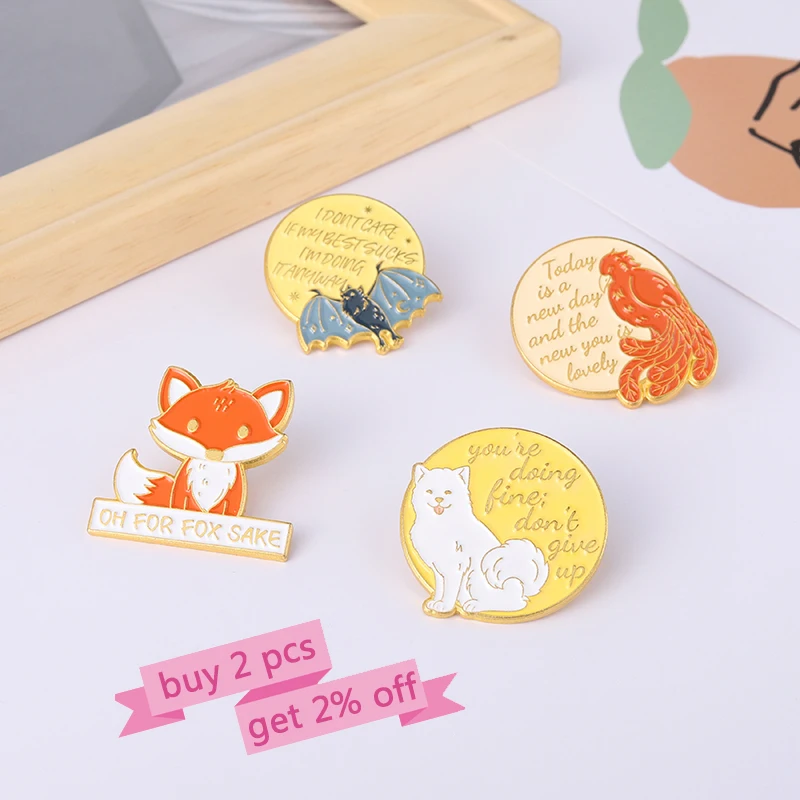 Эмалированные булавки с мотивами животных, брошь Птица в виде лисы, летучей мыши, собаки, значок на лацкан, мультяшное ювелирное изделие, подарок для детей, друзей