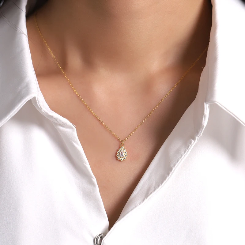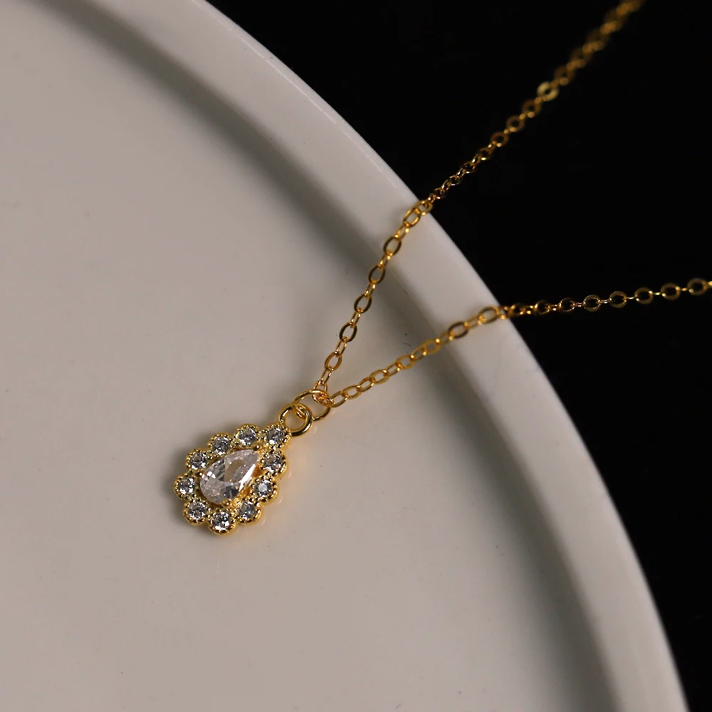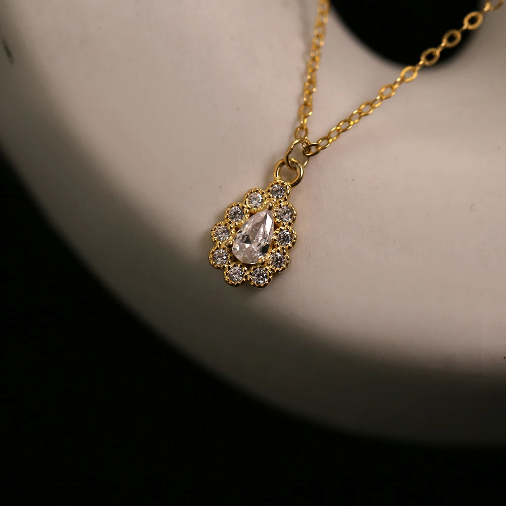 Цепочка женская из серебра 925 пробы, с паве из 14-каратного золота, подвеска в виде хрустальной капли пробы