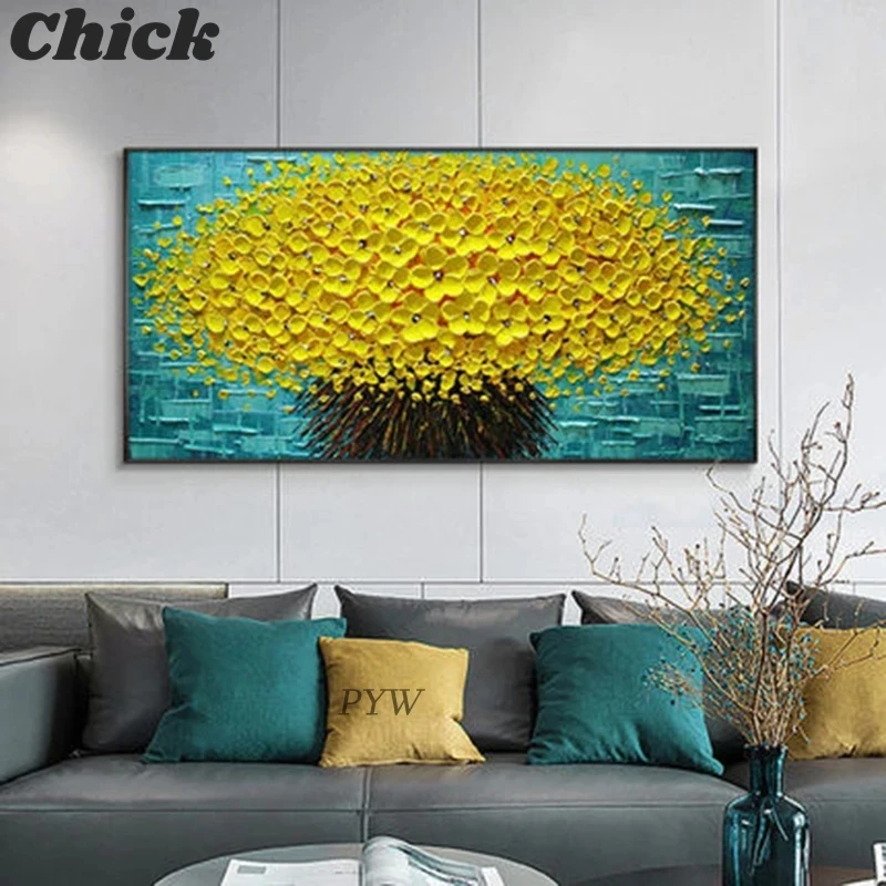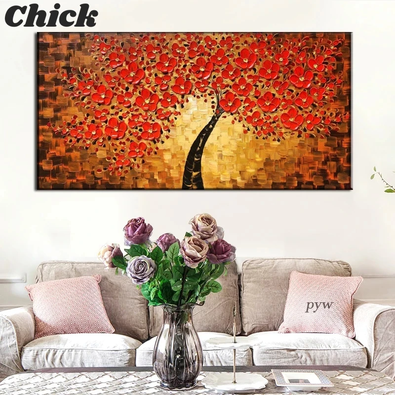 Современная Абстрактная Большая Золотая картина ручной росписи с изображением денежных деревьев, цветов, 3d картина маслом на холсте, домашний декор, Настенная картина для гостиной