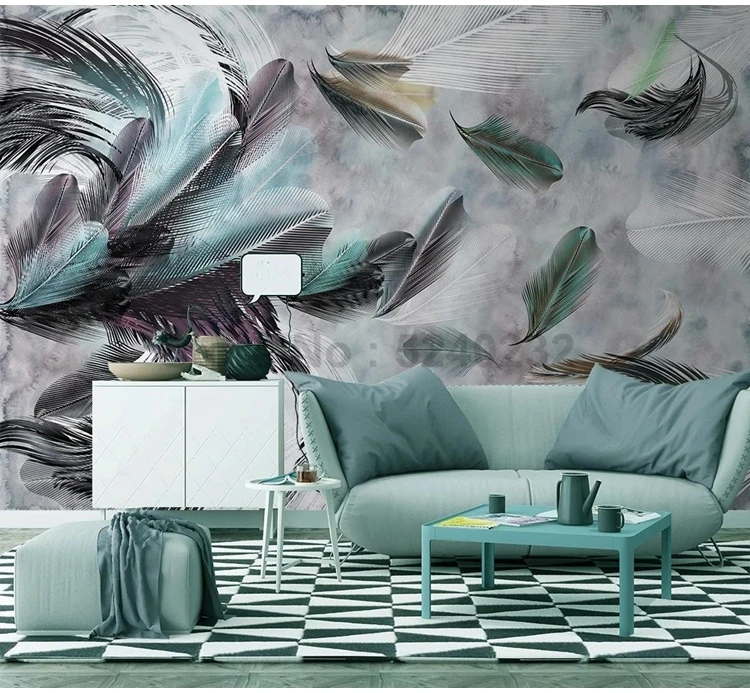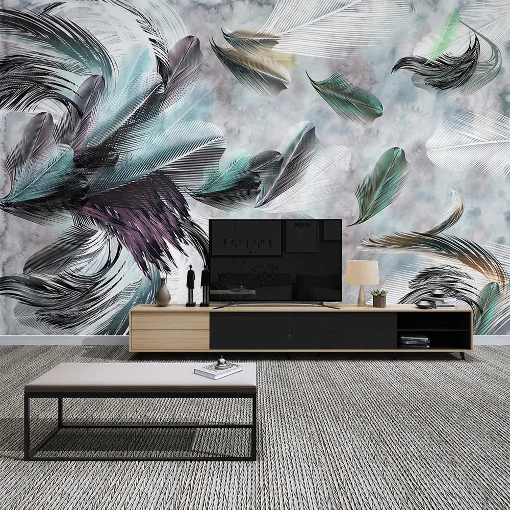 Пользовательские 3D фотообои современные абстрактные ретро красочные перьевые художественные настенные картины Домашний Декор бумаги Papel де Parede Sala