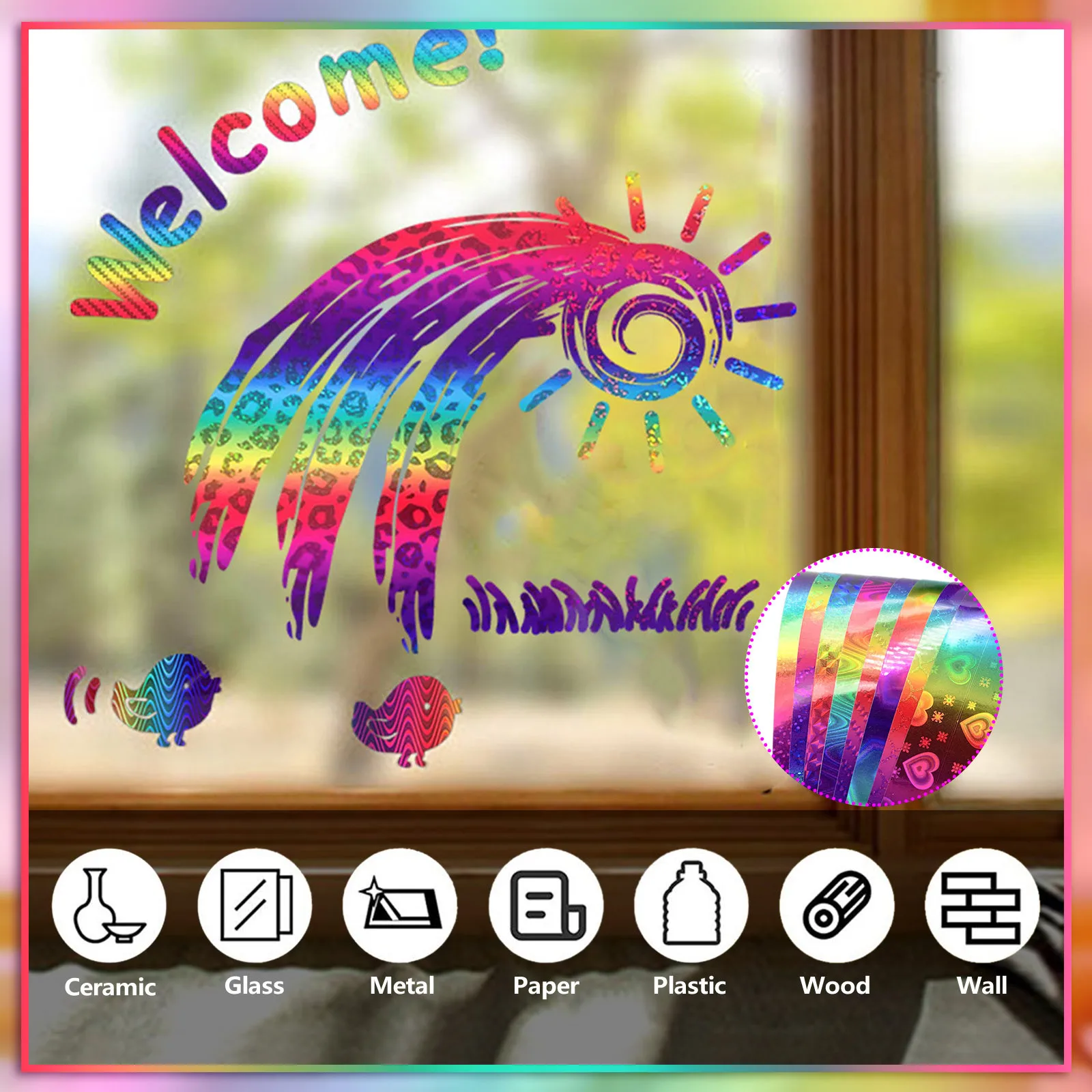 Самоклеящиеся наклейки, декоративная пленка, голографический Радужный самоклеящийся виниловый рулон для Cricut, легко разрезаемые наклейки