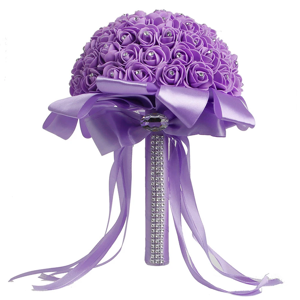 L21E ручной работы Свадебный букет невесты из искусственной пены с розами Свадебный декор для вечеринкиOOTDTY100% новый и высокое качествоМатериал: полиэтилен, лентаЦвет: белый/розовый/фиолетовый/Hermosa розовый/бежевый/голубой