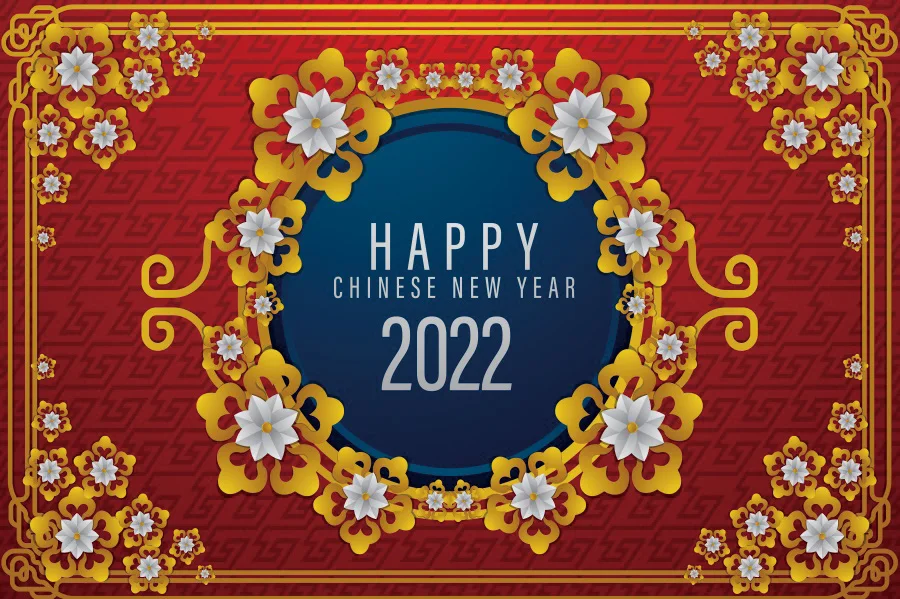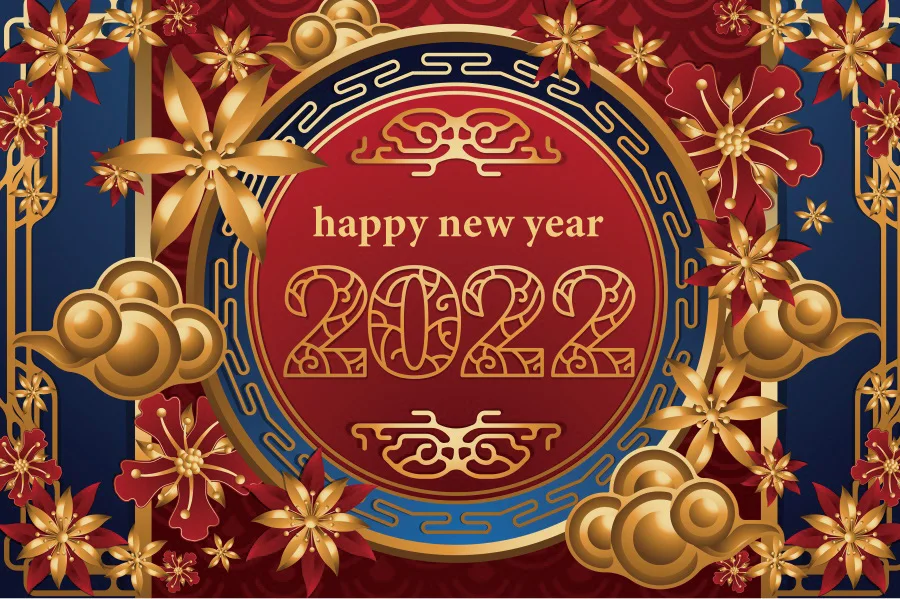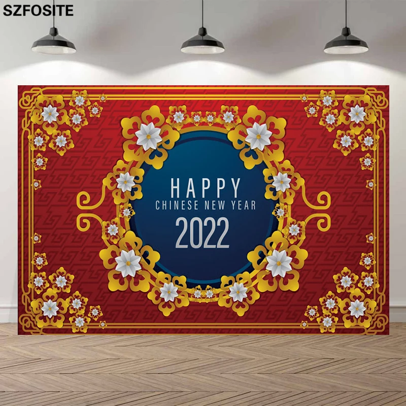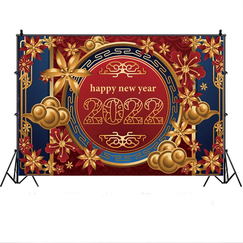 Фон для новогоднего праздничного декора в китайском стиле, золотые облака, цветы, красный, синий, 2022