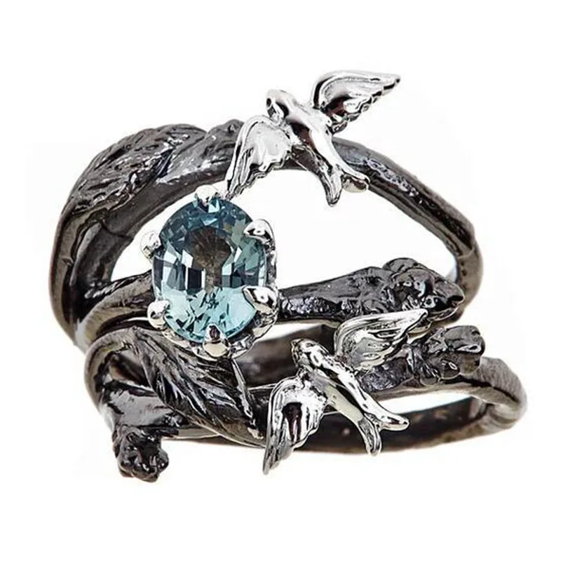 Набор женских винтажных колец, с цирконом, с птицами и черными ветвями