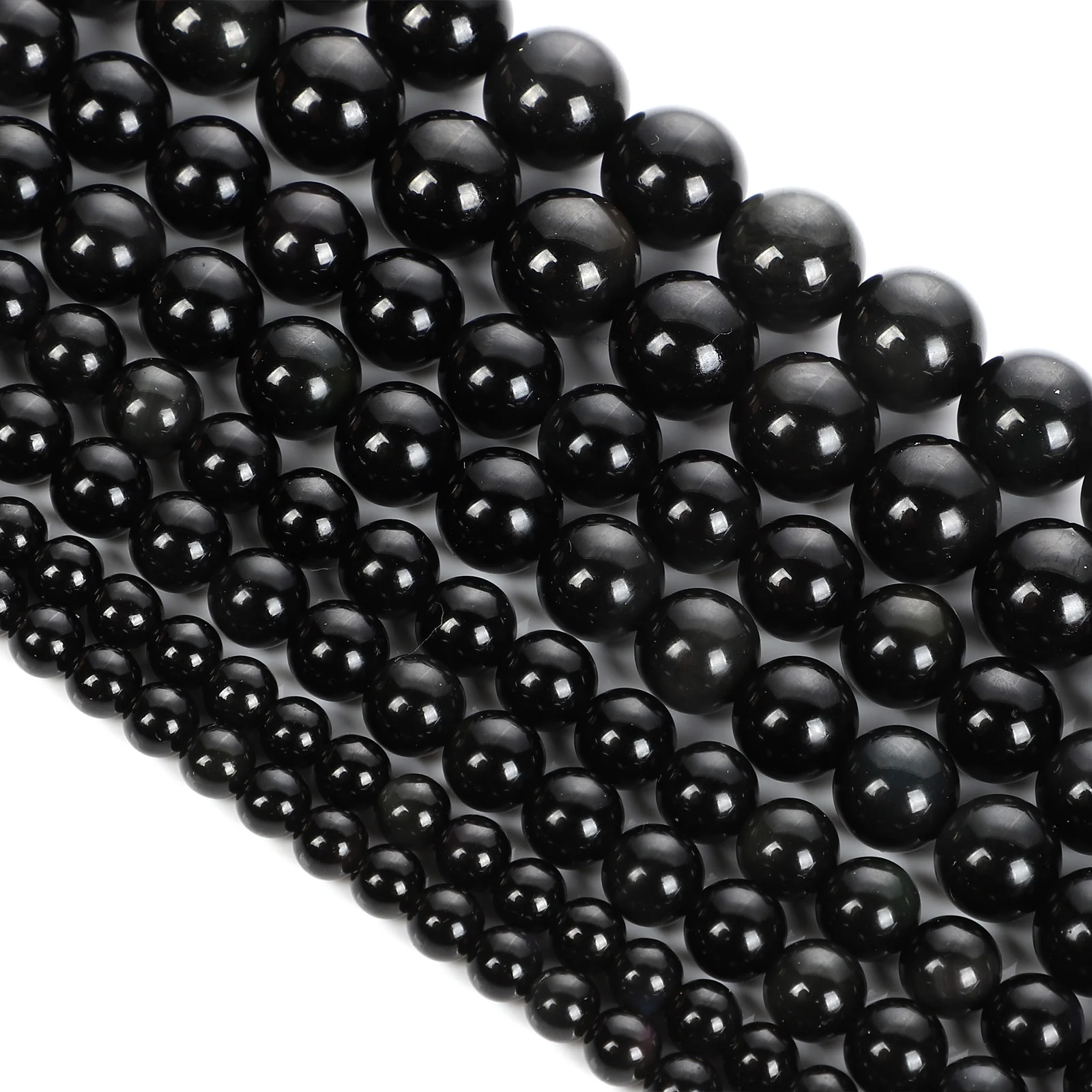 Круглые бусины-разделители из черного радужного обсидиана с натуральным камнем для изготовления ювелирных изделий, браслетов, ожерелий сделай сам, нитка 681012 мм