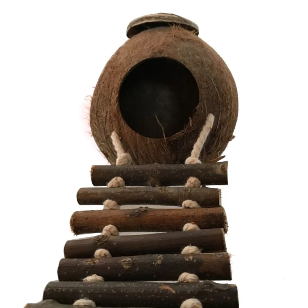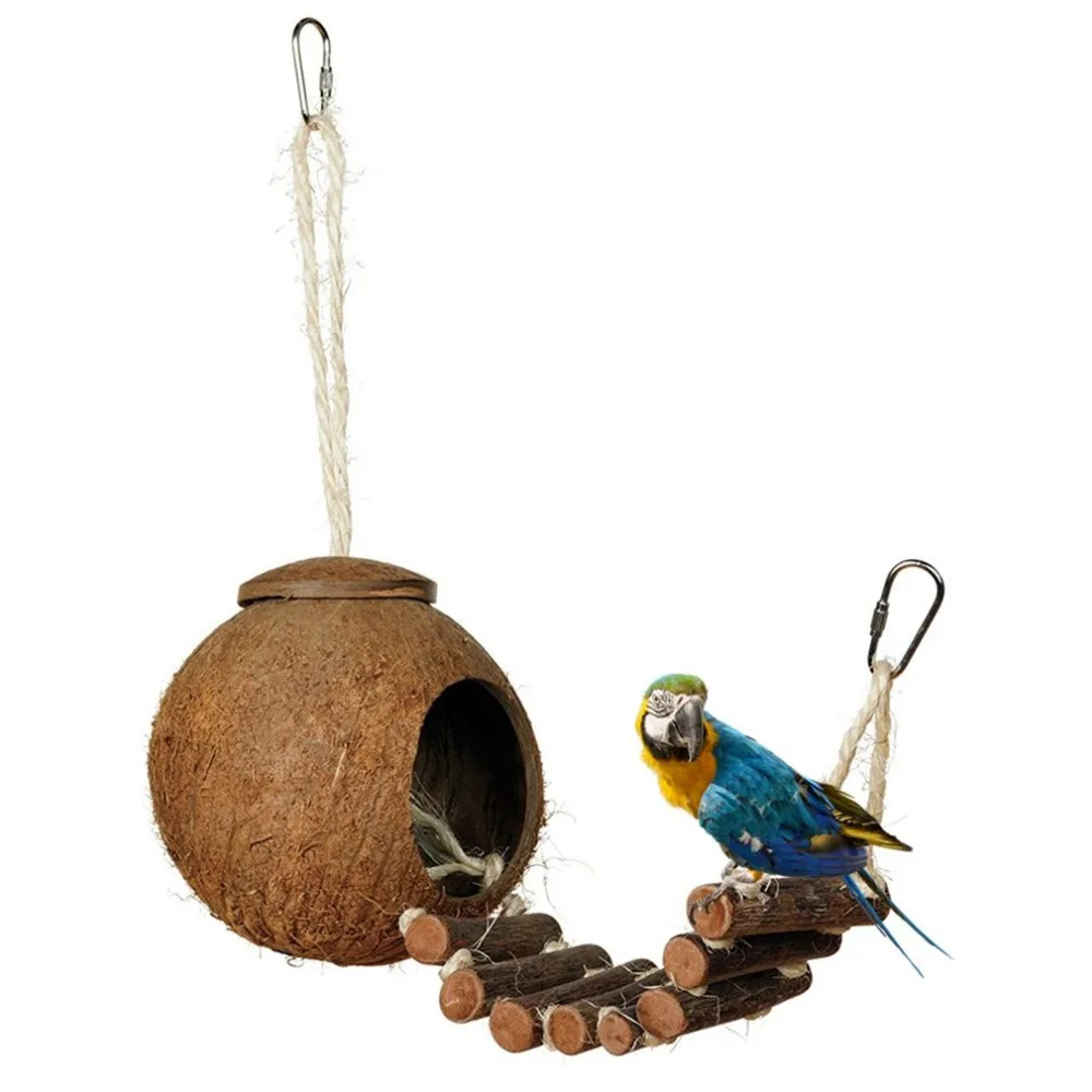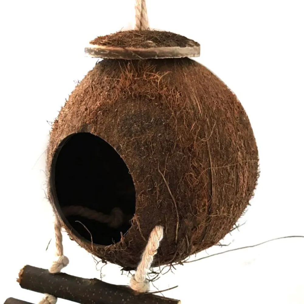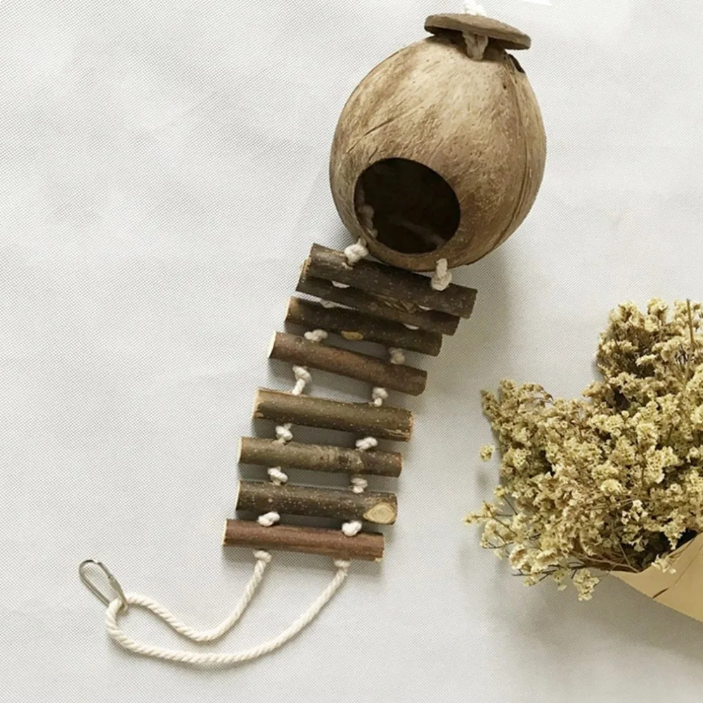 Симпатичный удобный дизайн, натуральная Кокосовая Скорлупа, домик-гребень для птиц маленького размера, клетка для попугаев с лестницей