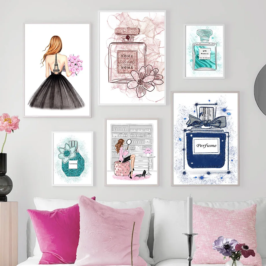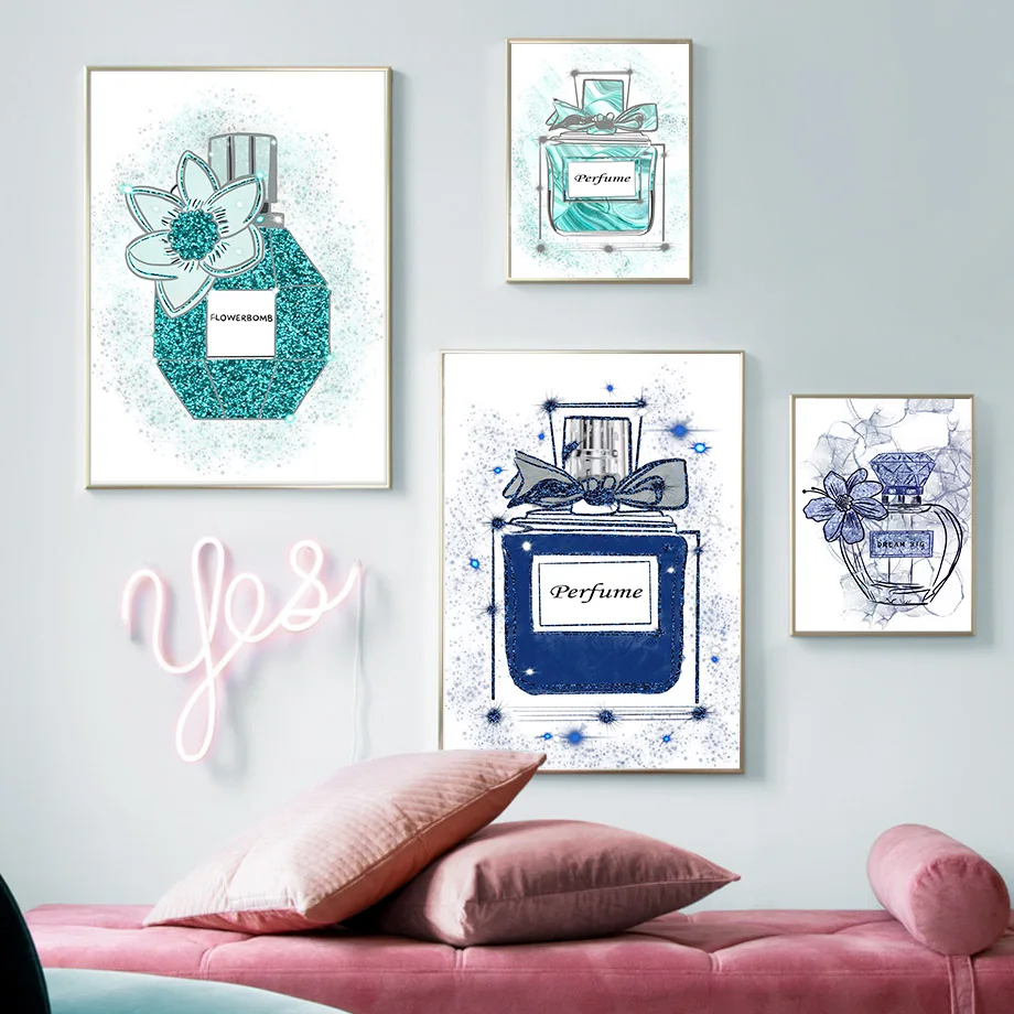 Модный алмазный парфюм для женщин на высоком каблуке, настенная Картина на холсте, скандинавские постеры и принты, настенные картины для декора гостиной
