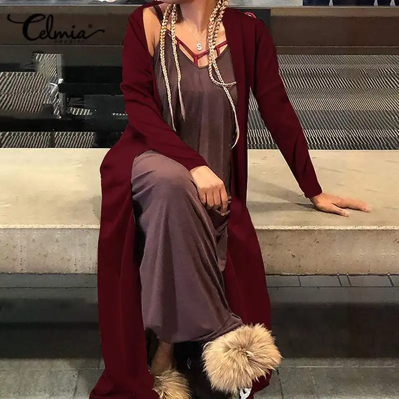 2021 Celmia женские кардиганы с длинным рукавом, модные куртки, дли...