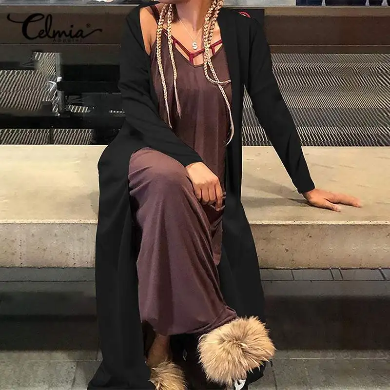 Кардиганы Celmia, винтажное длинное кимоно, модный Свободный кардиган с длинным рукавом, Осенние повседневные однотонные элегантные накидки, 2021