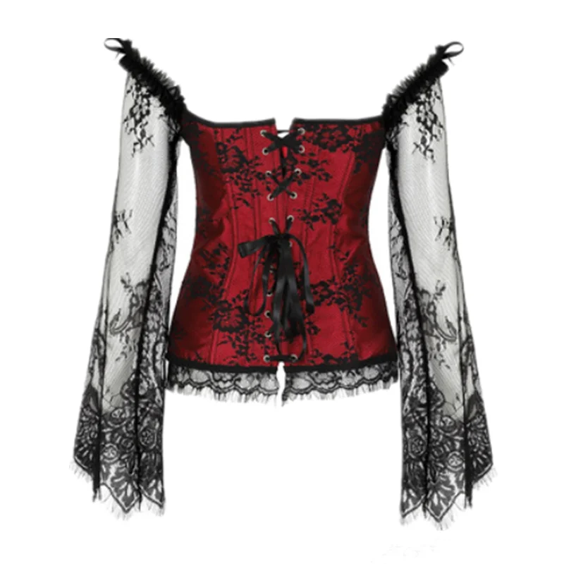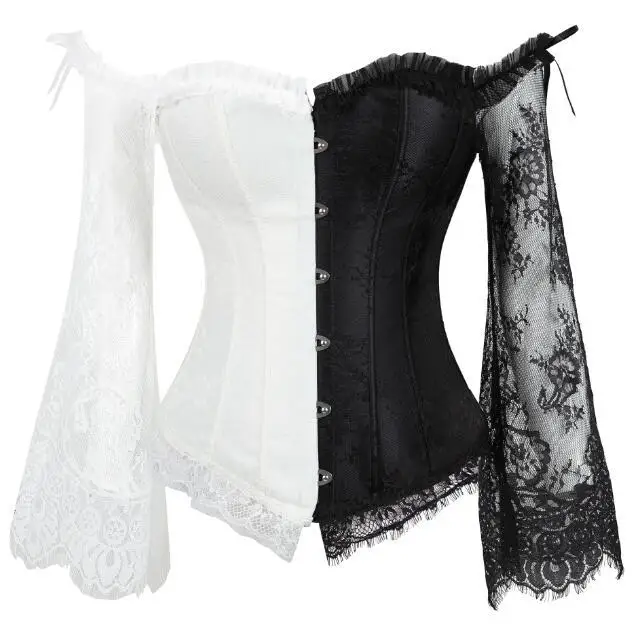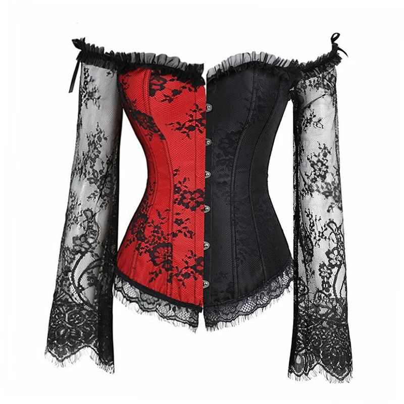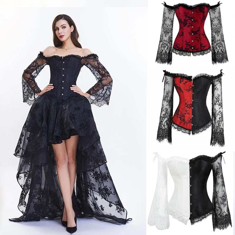 Корсет женский кружевной в готическом стиле, пикантная Элегантная черная юбка с длинным рукавом, с открытыми плечами в стиле стимпанк