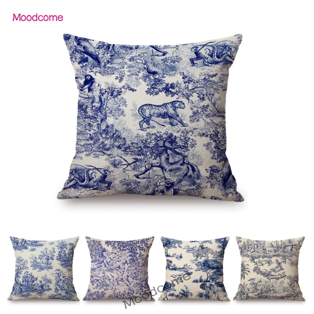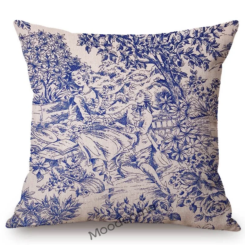 Традиционный классический французский фон с рисунком, темно-синий элегантный ретро чехол для дивана или подушки для домашнего декора